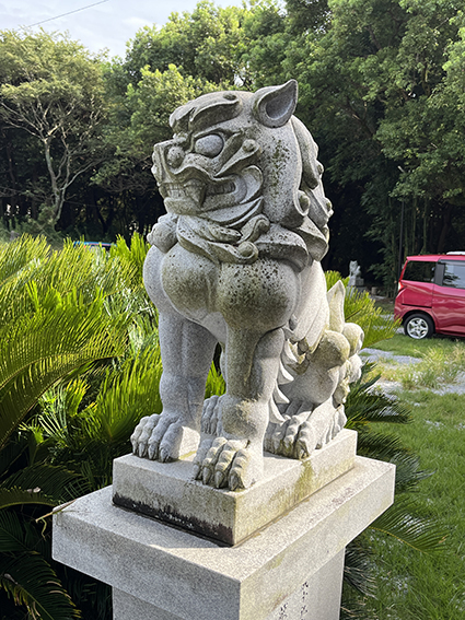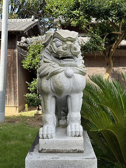 その玄界灘に接する海岸近くに年毛神社はあった。一対の御影石つくりの灯籠の奥に柏紋の年毛神社のご本殿が見える。神社の一の鳥居は神殿裏の玄界灘に向かって立っている。海からお見えになる神様を迎え入れるように。右わきに社務所があった。玄関先に石つくりの亀さんがかわいい目を見開いて歓迎してくれた。
