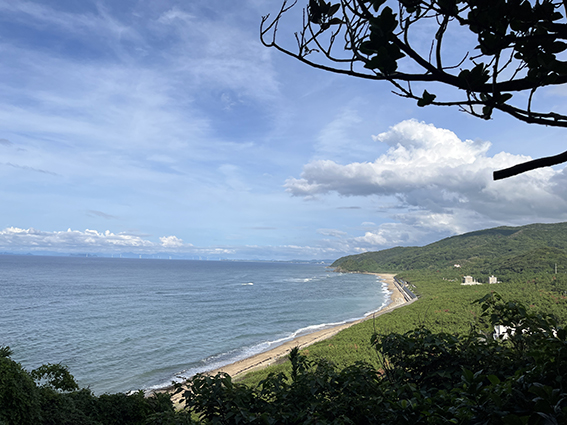 9月24日、宇野さんの車で古賀市から405号線を北上。左手に玄界灘の潮風を受けながら海岸線を走った。