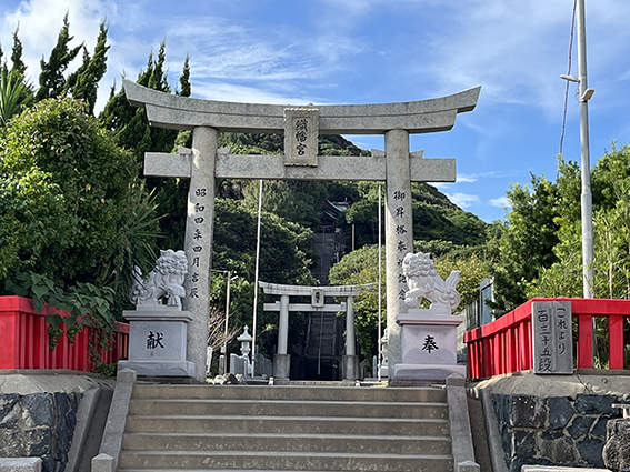 また、境内に巨大な岩が据えられていた。昔からこの岬には異国の巨大な鐘が海底に沈んでいるという言い伝えがあり、大正期に引き上げたところこの大岩であったという。鐘はまだ沈んでいるというロマンが底深くに眠っている。